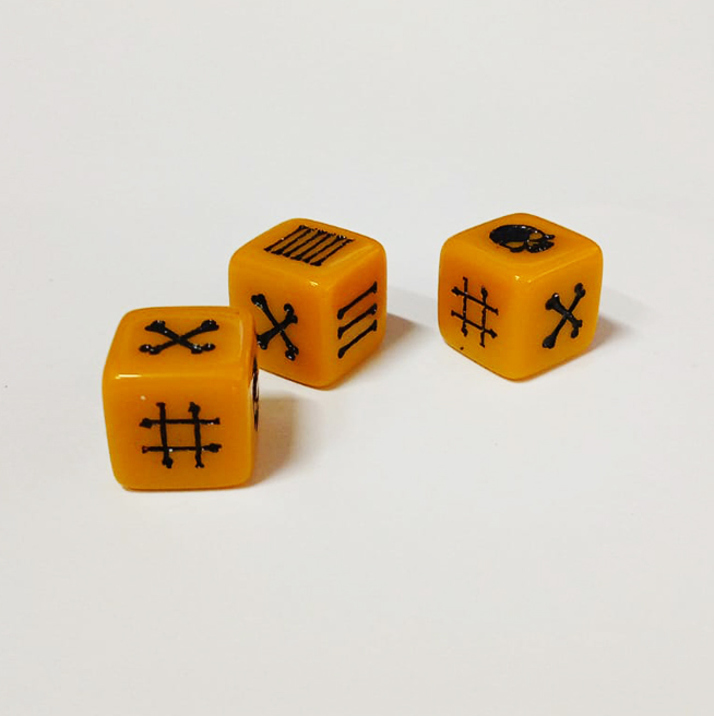 Kit exclusivo com 3 dados (d6) de 15mm – Arte “Necromante”